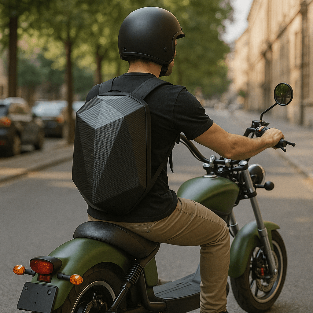 Motorrad Rucksack wasserdicht – Carbon Design für E-Chopper & E-Bike